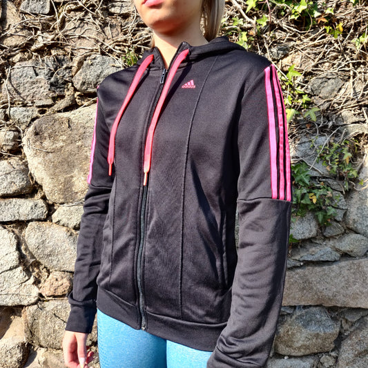 Adidas Black Full-Zip Pink Stripes Hoodie Track Jacket Women Size Small UK 8-10