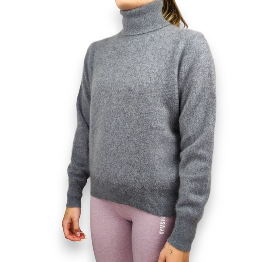 Yorn Grey 100% Cashmere High Neck Pullover Jumper Sweater Women Size Medium