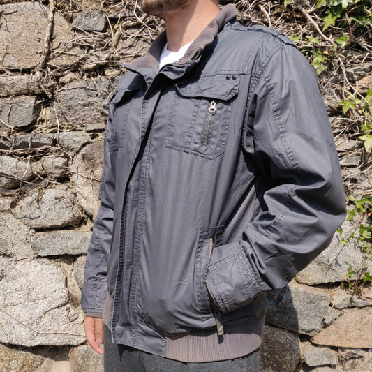 Diesel Industry Vintage Grey Nylon Rain Bomber Jacket Coat Men Size 4 / Large