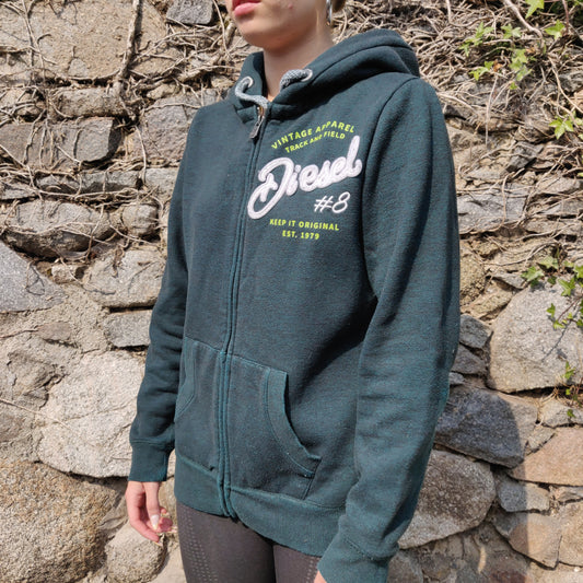 Diesel Vintage Apparel Track & Field Green Full-Zip Hoodie Women Size Medium
