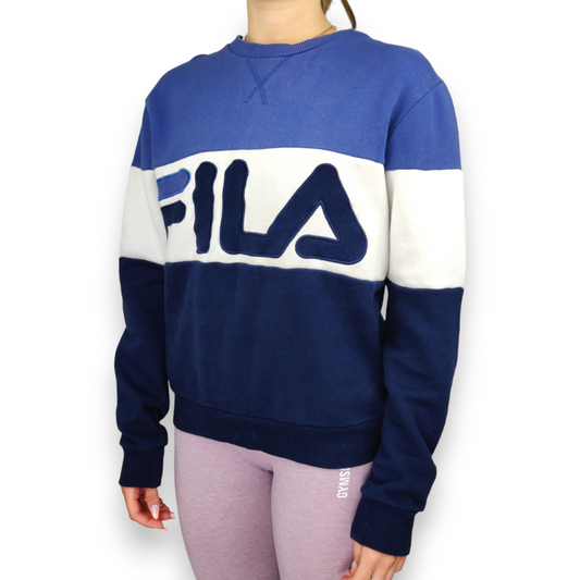 FILA Vintage Blue Embroidered Logo Loose Fit Pullover Sweatshirt Women Size XS / UK 8
