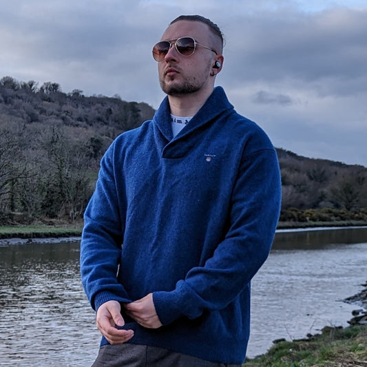 Gant Blue Shawl Neck Wool Jumper Men Size Large