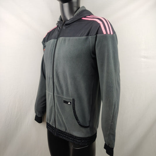 Adidas Grey/Black Pink Stripe Fleece Track Jacket Men Size Medium