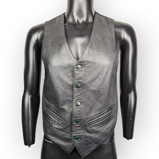 Freezone Vintage Black Leather Sport Button Vest Waistcoat Men Size Small
