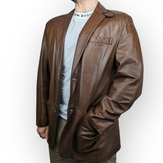 Vintage Brown Button Up Soft Sheep Leather Jacket Blazer Men Size Large