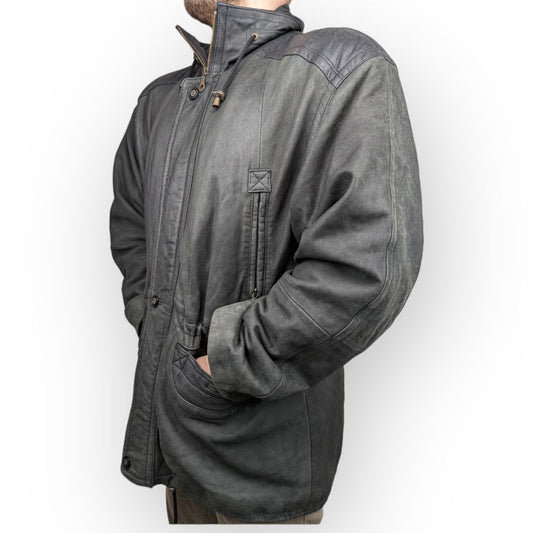 Vintage Black Soft Leather Full Zip Jacket Coat Men Size XL