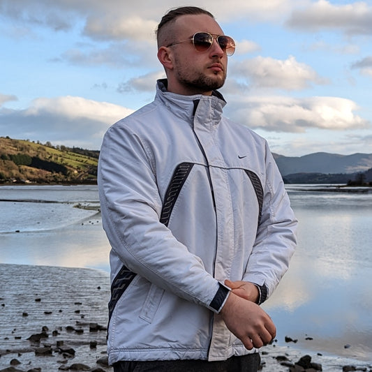 Nike White Vintage Full Zip Windbreaker Jacket Men Size Small