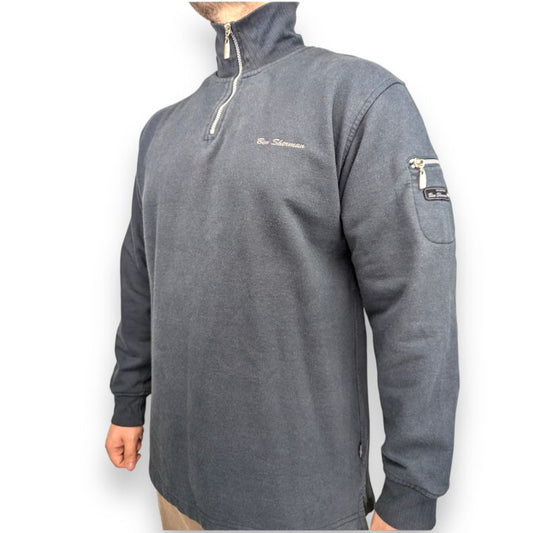 Ben Sherman Navy Fleece Lined Half-Zip Jumper Men Size Large
