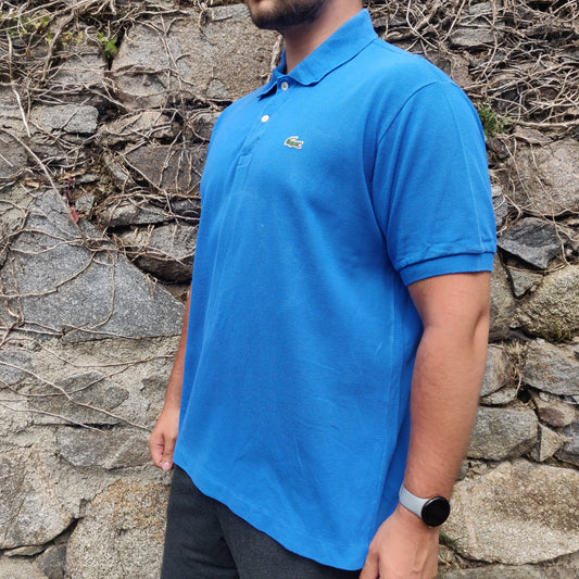 Lacoste Blue Short Sleeve Half Button Golf Tennis Cotton Polo Shirt Men Size XL / 6