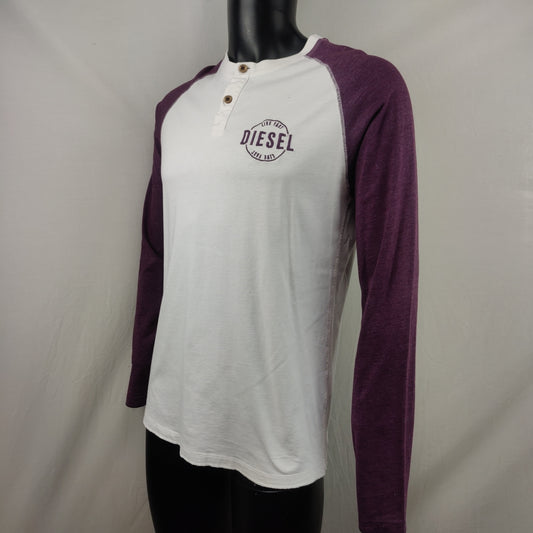Diesel White Burgundy Long Sleeve Polo Shirt Men Medium