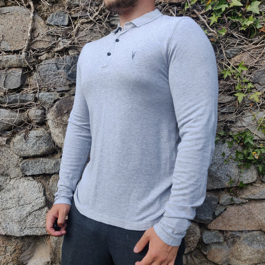 All Saints Grey Reform Ram Skull Long Sleeve Button Cotton Shirt Men Size Small