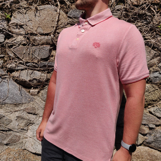 Paul Costelloe Living Pink Short Sleeve Half Button Oxford Polo Shirt Men Size Large