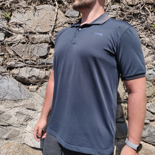 Ping Navy Blue Short Sleeve Half Button Golf Activewear Polo Shirt Men Size Large