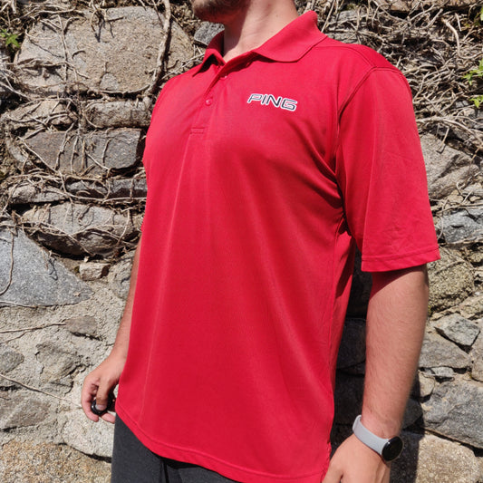 Ping Red Button Up Short Sleeve Active Embroidered Golf Polo Shirt Men Size XL