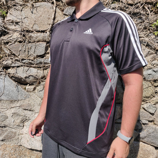 Adidas ClimaLite 3 Stripes Black Short Sleeve Button Up Golf Polo Shirt Men Size Large