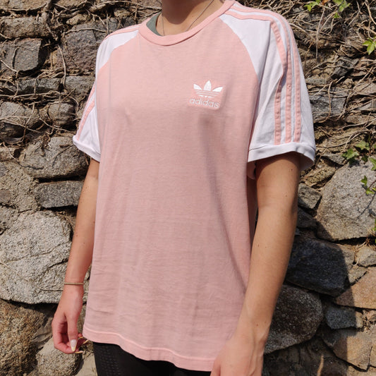 Adidas Originals Raglan Pink White 3 Stripes Tee T-shirt Men Size Medium - CV6000
