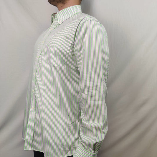 Ralph Lauren White Green Striped Long Sleeve Casual Shirt Men Size Large