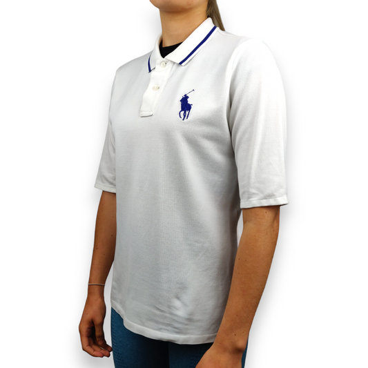 Ralph Lauren Active Vintage White Short Sleeve Polo Shirt Women Size Medium
