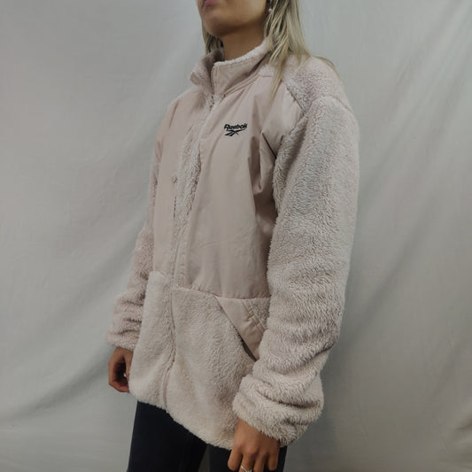 Reebok Pink Fleece Windbreaker Jacket Women Size XL
