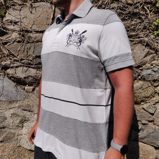 Tommy Hilfiger Custom Fit White Grey Striped Cotton Golf Polo Shirt Men Size Large