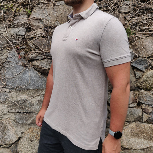 Tommy Hilfiger Beige Short Sleeve Classic Fit Cotton Polo Shirt Men Size Medium