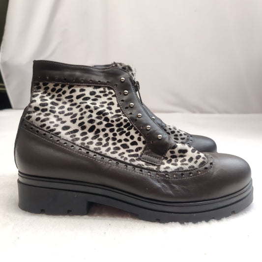 Jose Saenz Brown Cheetah Print Leather Platform Boots Women UK 7 EU 41
