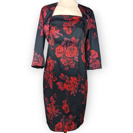 Michaela Louisa Rose Print Red Black Blazer Jacket & Dress Outift Women Medium