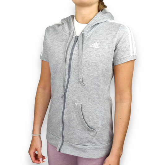 Adidas Grey Short Sleeve White Stripes Full Zip Hoodie Women Size UK 12