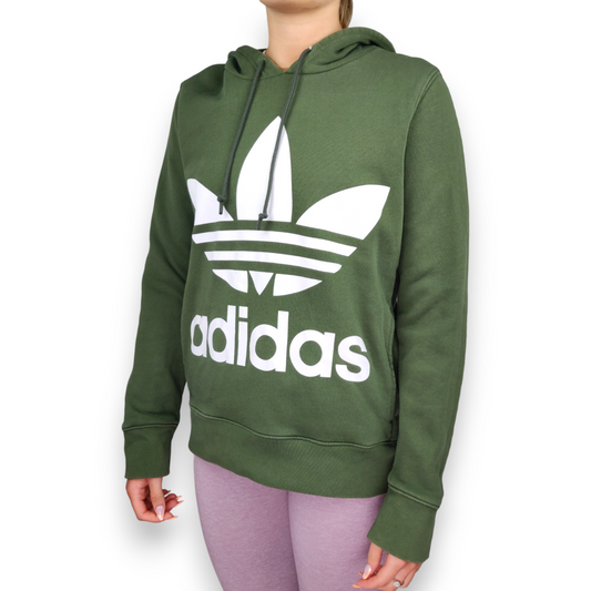 Adidas Green Trefoil Logo Big Graphic Print Cotton Pullover Hoodie Women Size UK 6