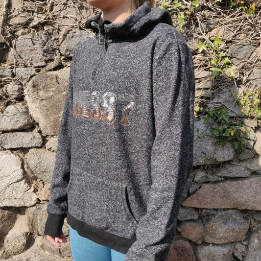 Guess Grey Gold Jeweled Logo Half-Zip Pullover Hoodie Women Size Medium