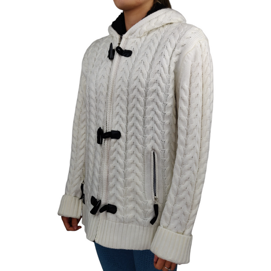 Dolce & Gabbana White Cable Knit Fleece Lined Full-Zip Hoodie Women Size Large