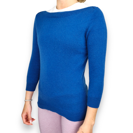 John Lewis 100% Cashmere Blue Boat Neck Pullover Jumper Sweater Women Size Small