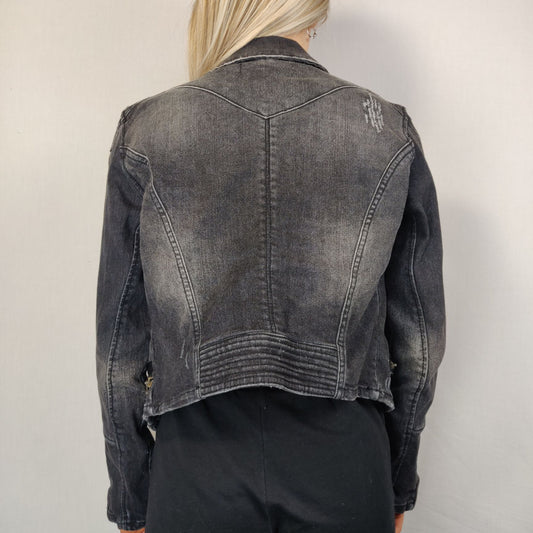 Sicko 19 Grey Basic Denim Jacket Long Sleeve Button Women Size Large