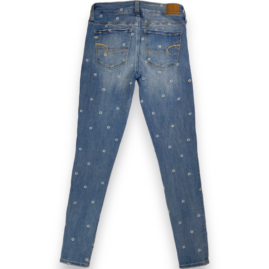 American Eagle Outfitters Blue Stretch Floral Embroidered Skinny Jeans Women Size UK 6 W28/L30