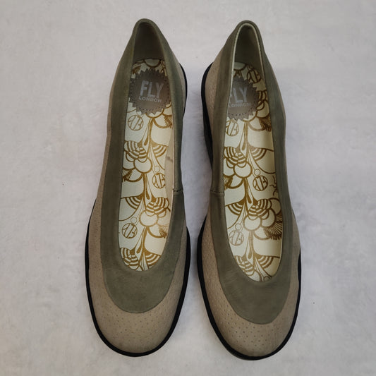 Fly London Yoko Perf Wedges Beige Slip On Comfort Shoes Women UK 6 EU 39