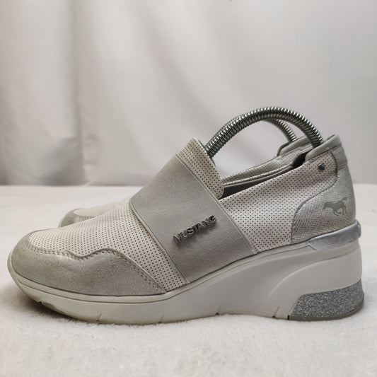 Mustang Grey/White Wedge Slip On Sneaker Trainers Shoes Women UK 6 EU 39