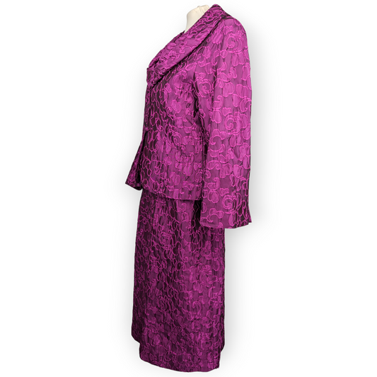 Jomhoy Violet Purple Floral 3 Piece Suit Blazer Jacket Top Skirt Dress Women Size 44