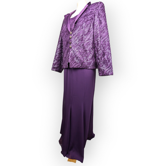Jomhoy Purple 3 Piece Suit Blazer Jacket Top Skirt Dress Women Size 44