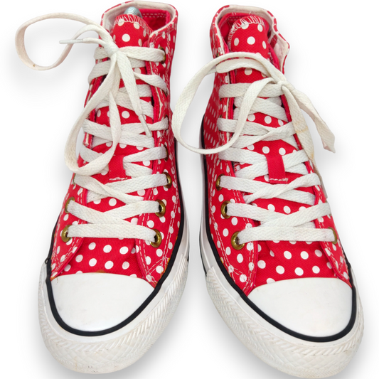 Converse All Star High Tops Red White Polka Dot Trainers Sneakers Shoes Women Size UK 4