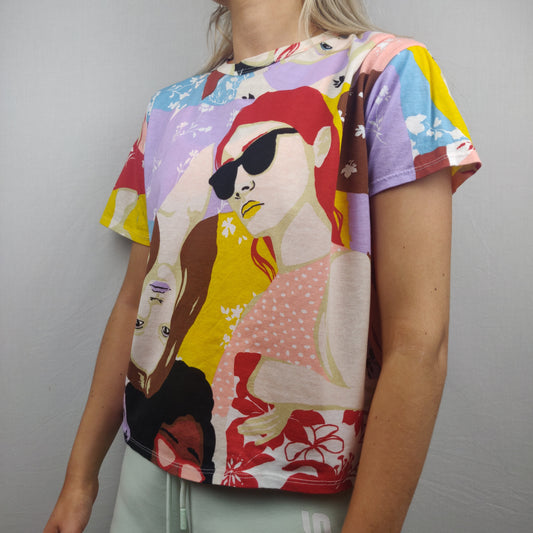 Zara Orange Pink Floral Half Sleeve Denim Jacket Women Size Large