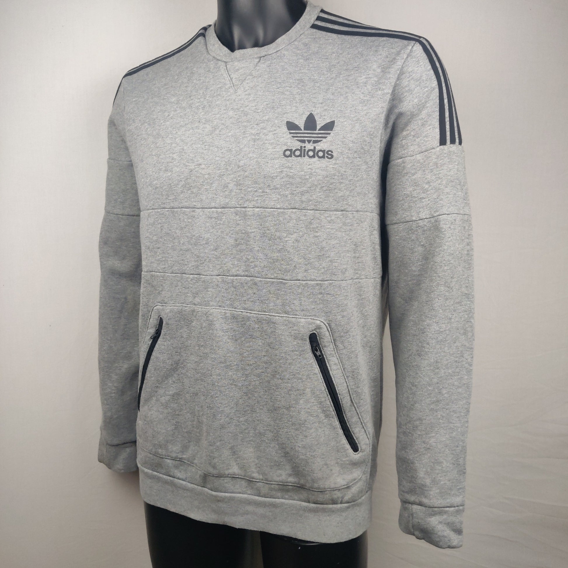 Adidas 3 Stripes Grey Sweatshirt Men Size Medium