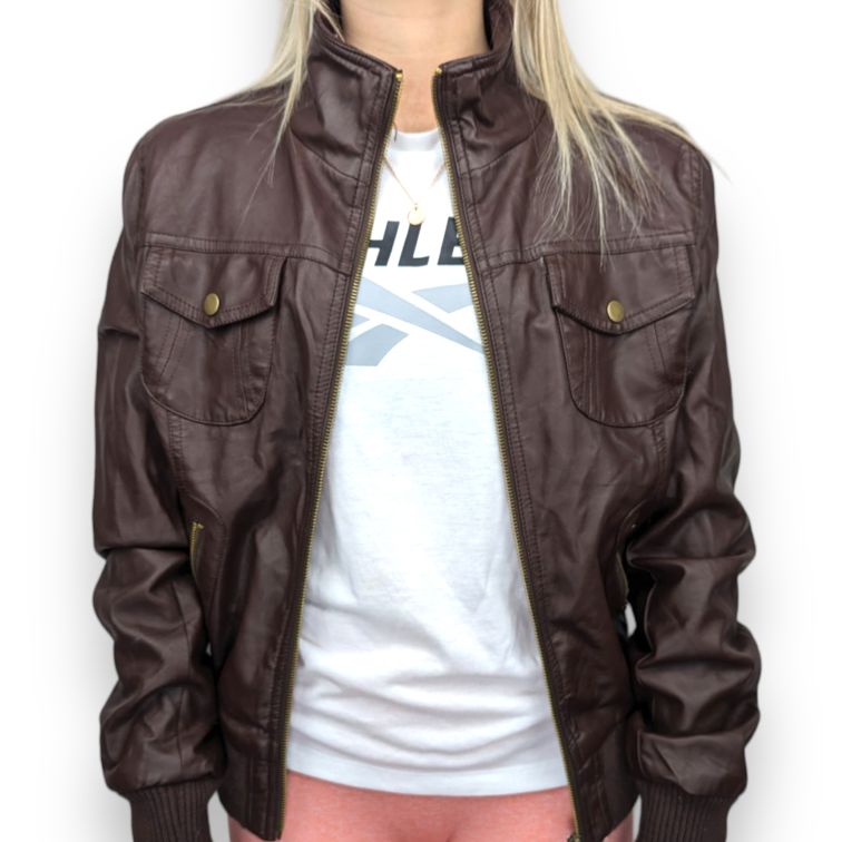 Ambiance Appared Vintage Brown Leather Biker Jacket Women Size XL