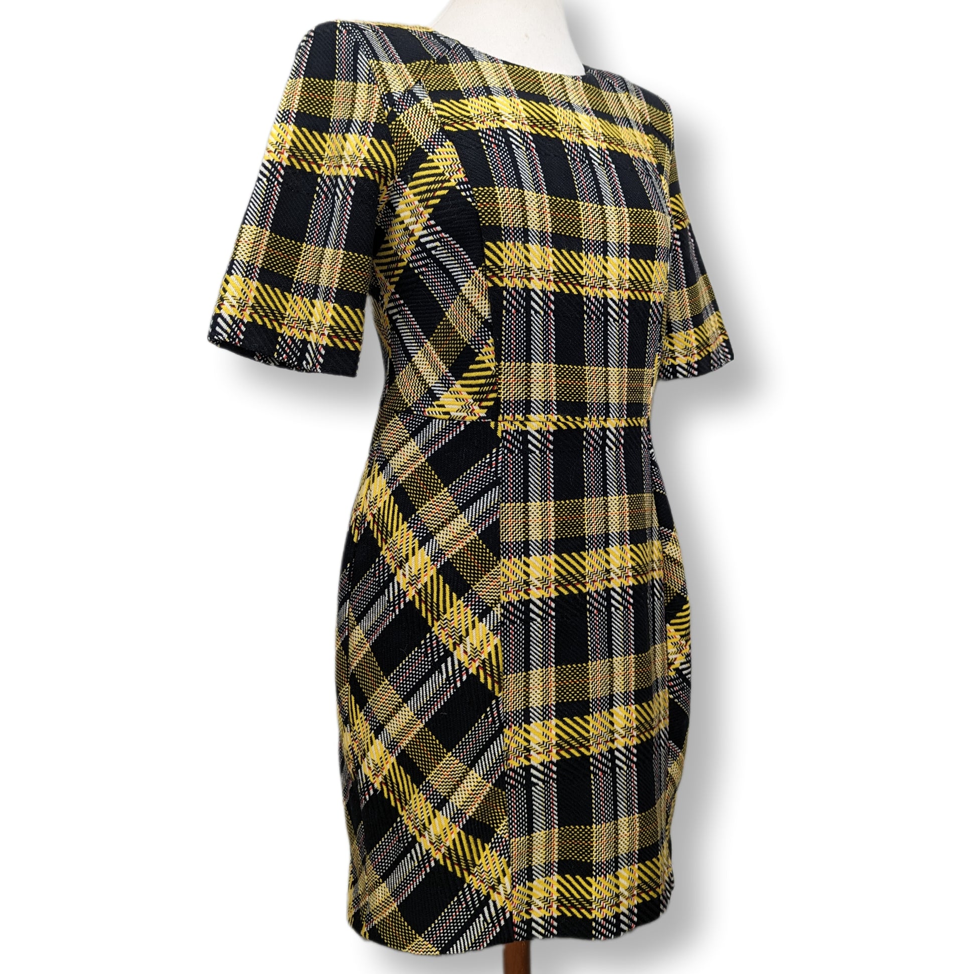 ASOS Yellow Plaid Sheath Dress Women Size UK 12