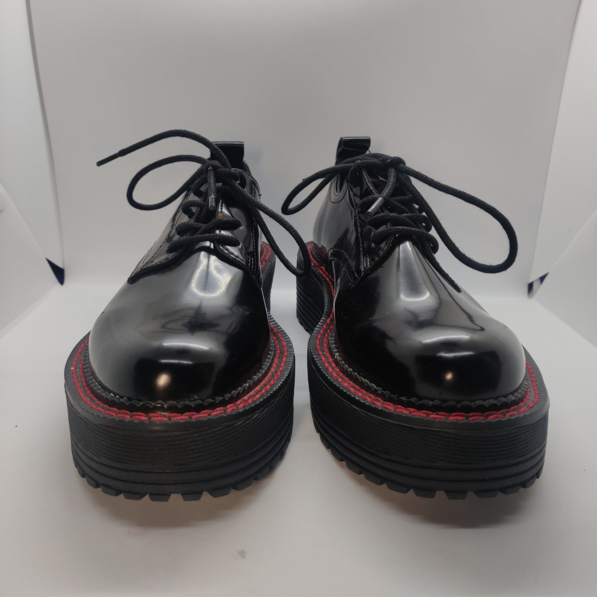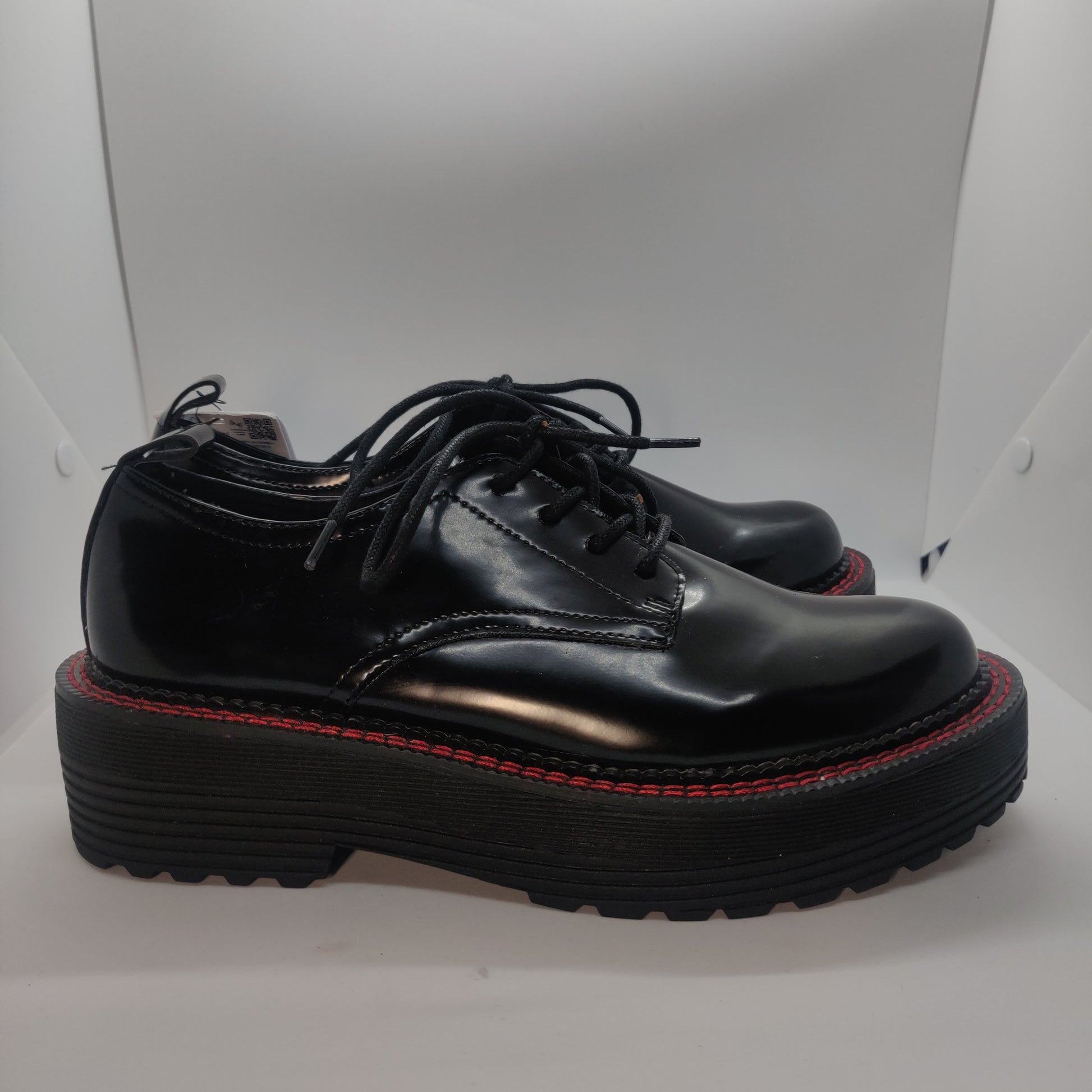 Bershka Shiny Black & Red Chunky Sole Casual Oxford Shoes Women UK 6 EU 39