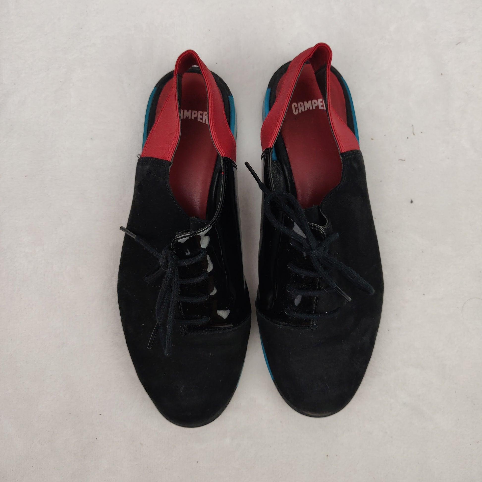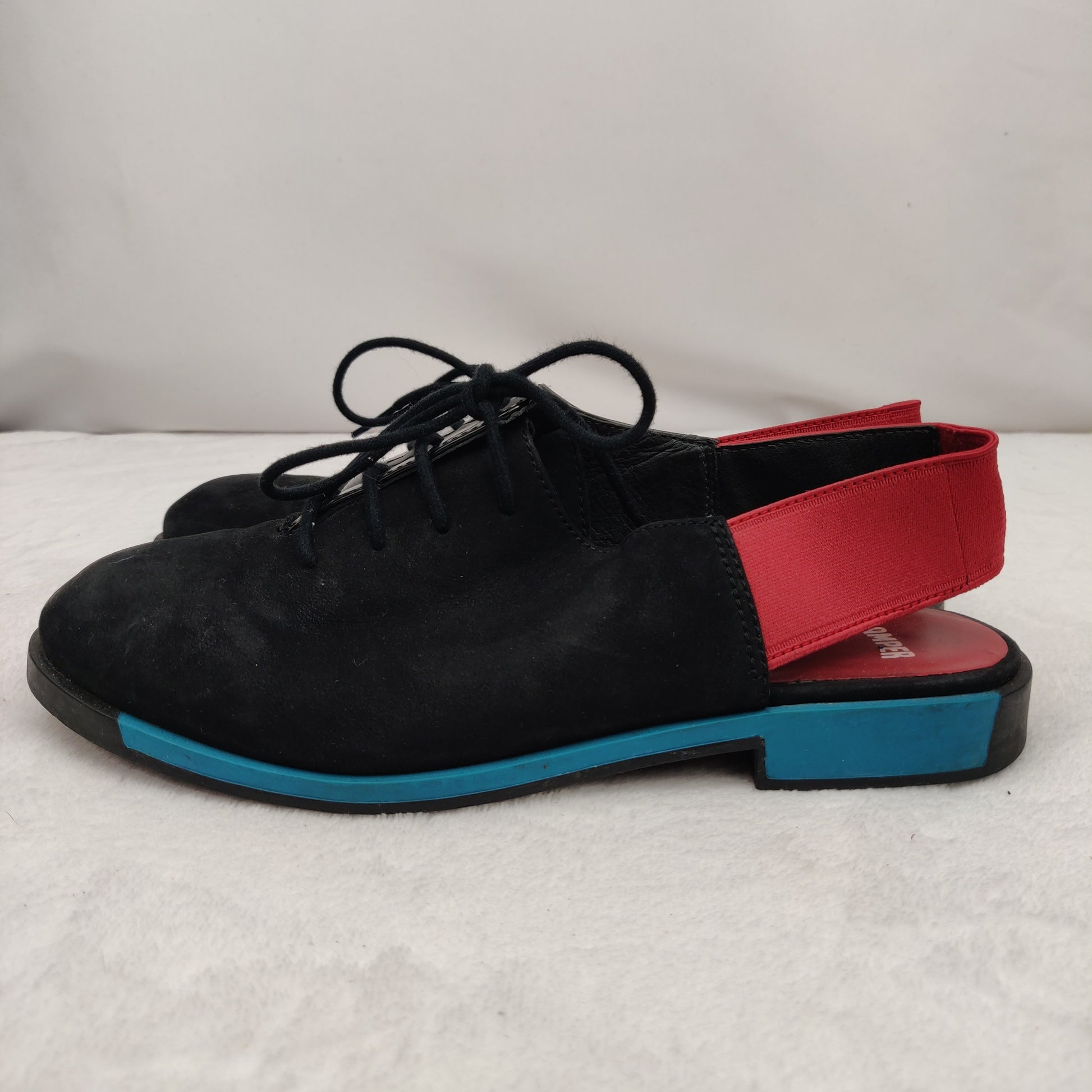 Camper Black Red Blue Patent Leather Slingback Oxford Flats Shoes UK 4 EU 37