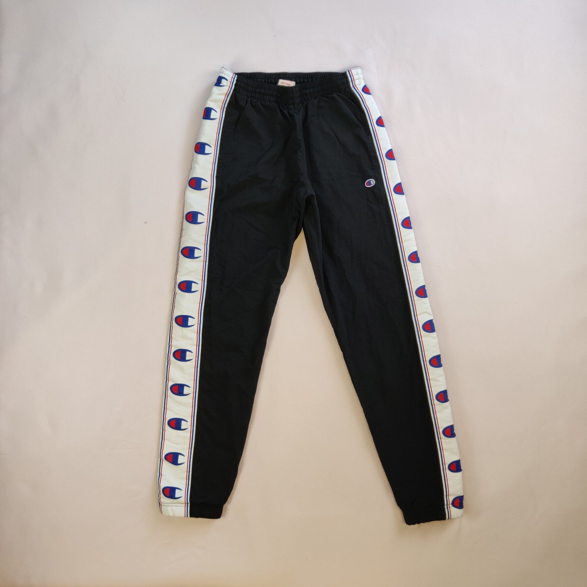 Champion Vintage Black Tracksuit Bottoms Track Pants Elastic Cuff Men Size Small