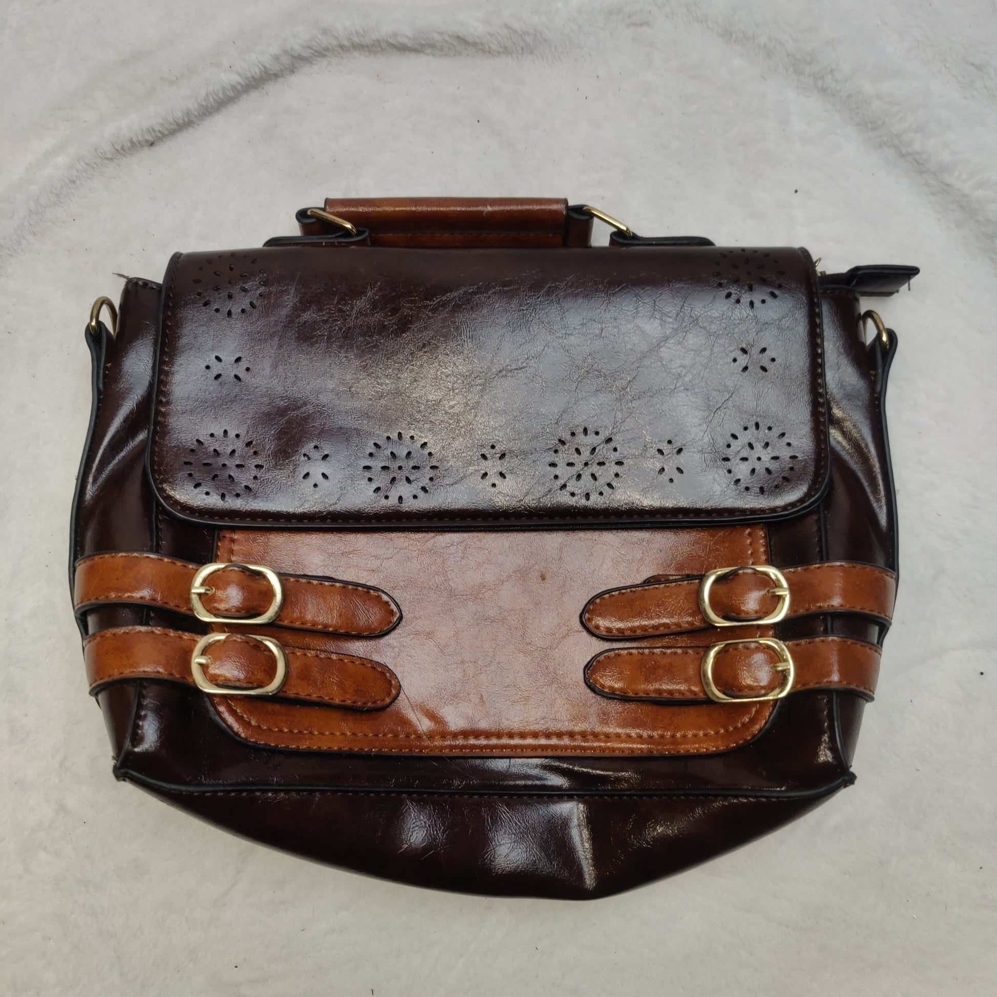 Banned Apparel Vintage Black Brown Retro Leather Satchel Top Handle Handbag