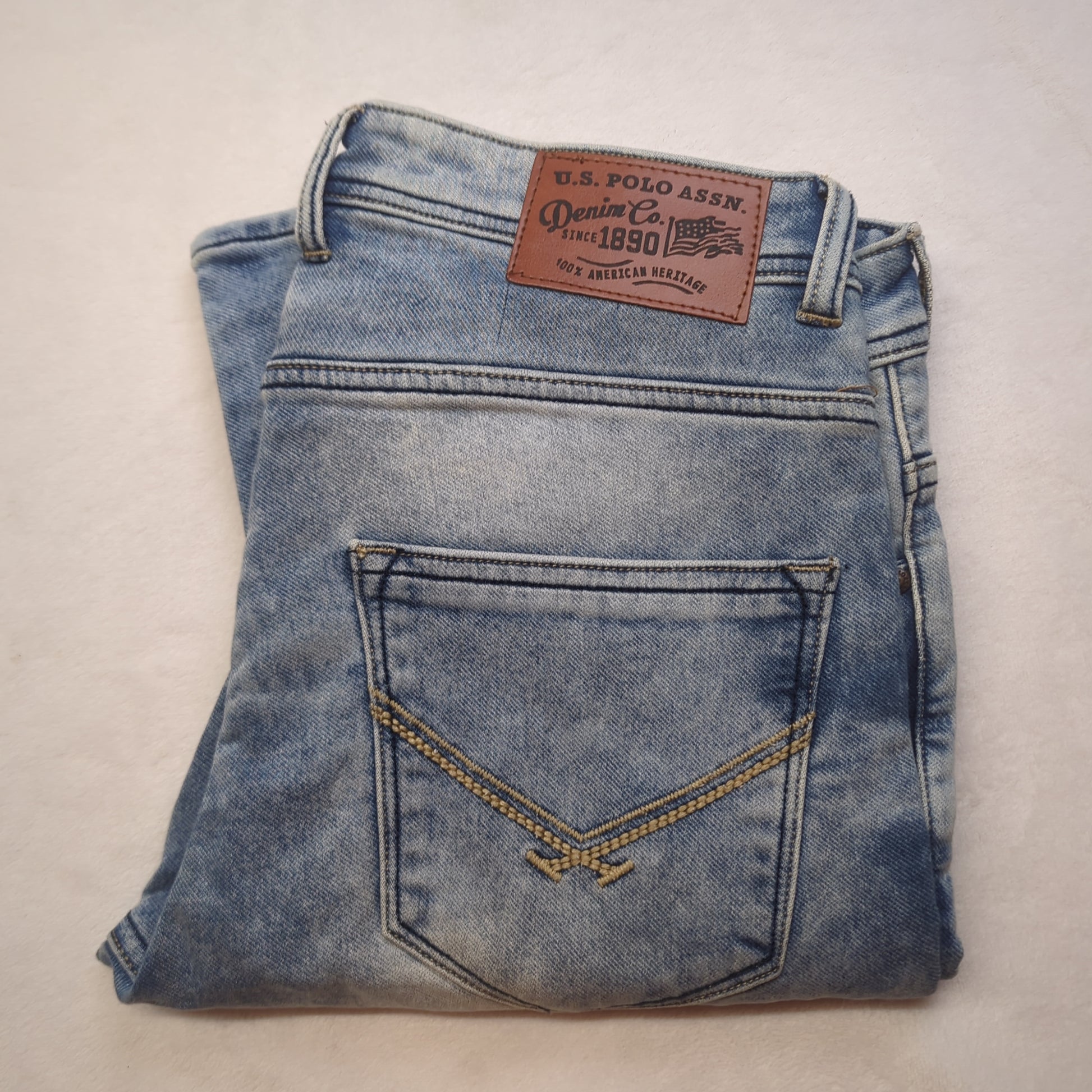 U.S Polo Assn Regular Slim Fit Acid Wash Blue Denim Jeans Men W32/L32