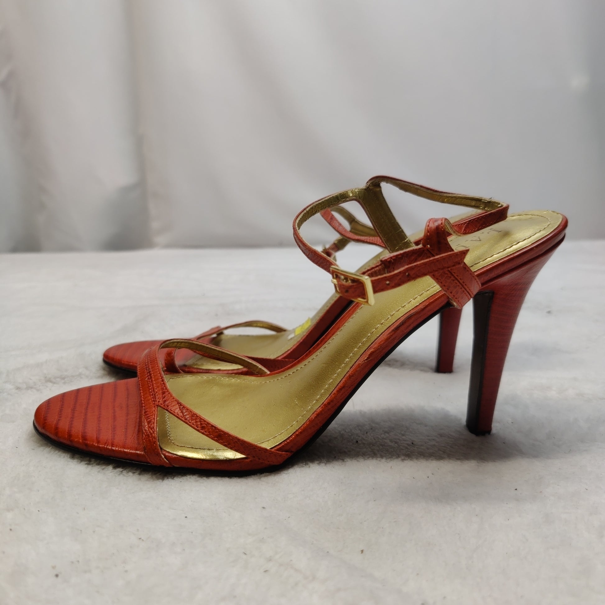 Ralph Lauren Orange Gold Strappy Heels Shoes Women Size UK 6.5 EU 39.5