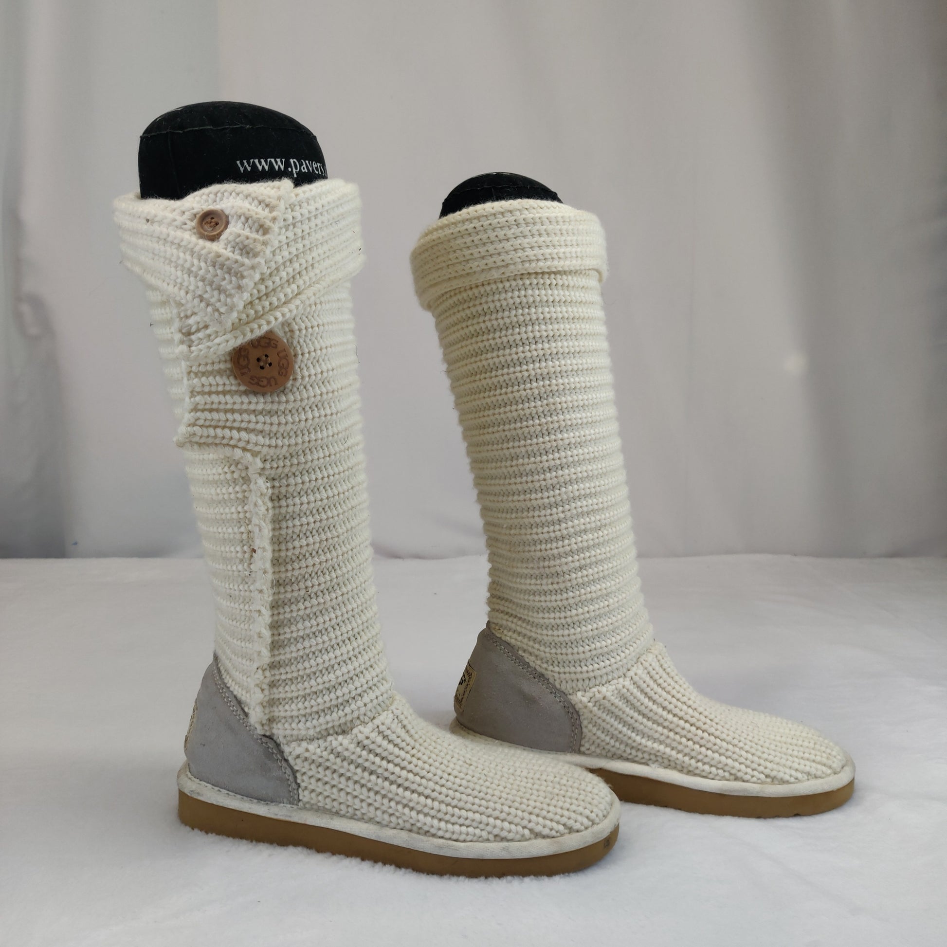 UGG Knit Crochet Wool White Tall Boots Women UK 5.5